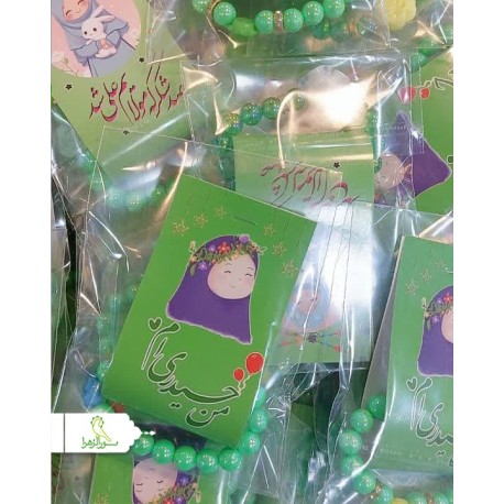 دستبند سبز به همراه گل رنگی با کارت 2 طرفه