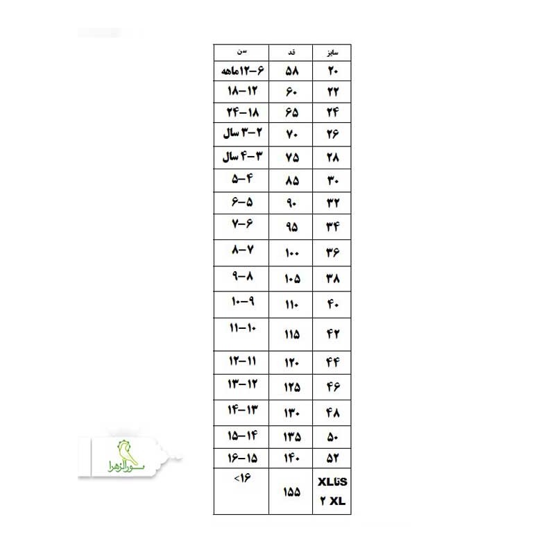 سایزبندی: لطفا جهت مشخص شدن سایز ، اندازه دور سینه ، دور کمر ، قد آستین و سایز استاندارد خود را به شماره 09905449950 در واتس آپ ارسال نمایید