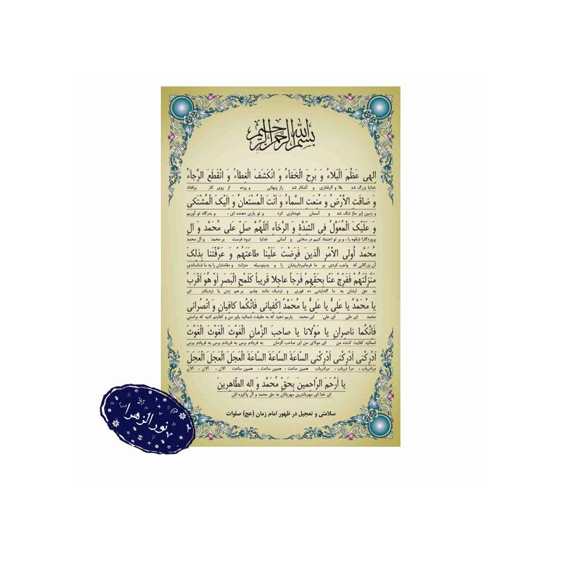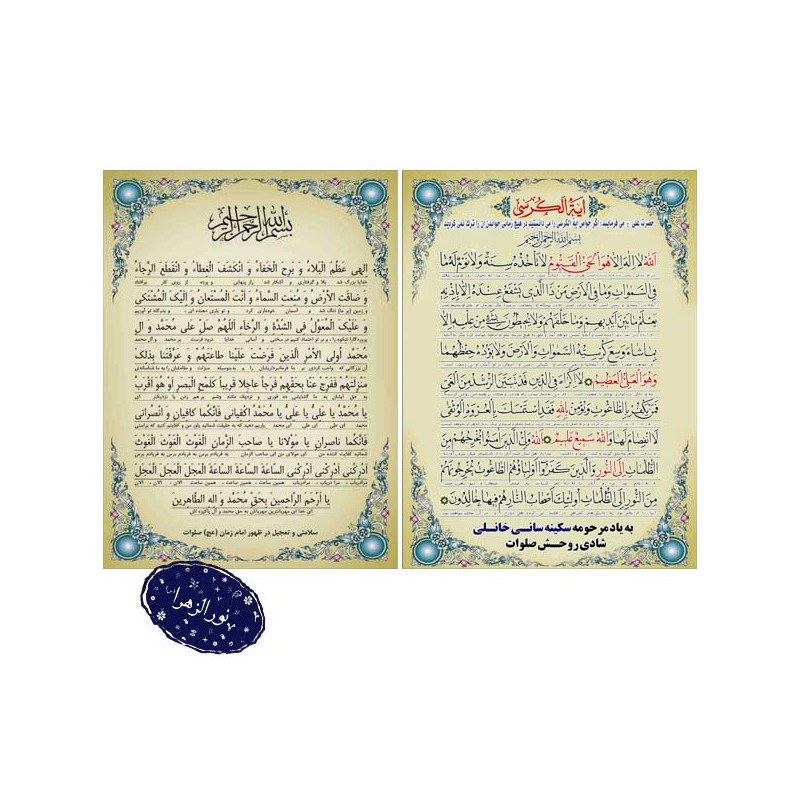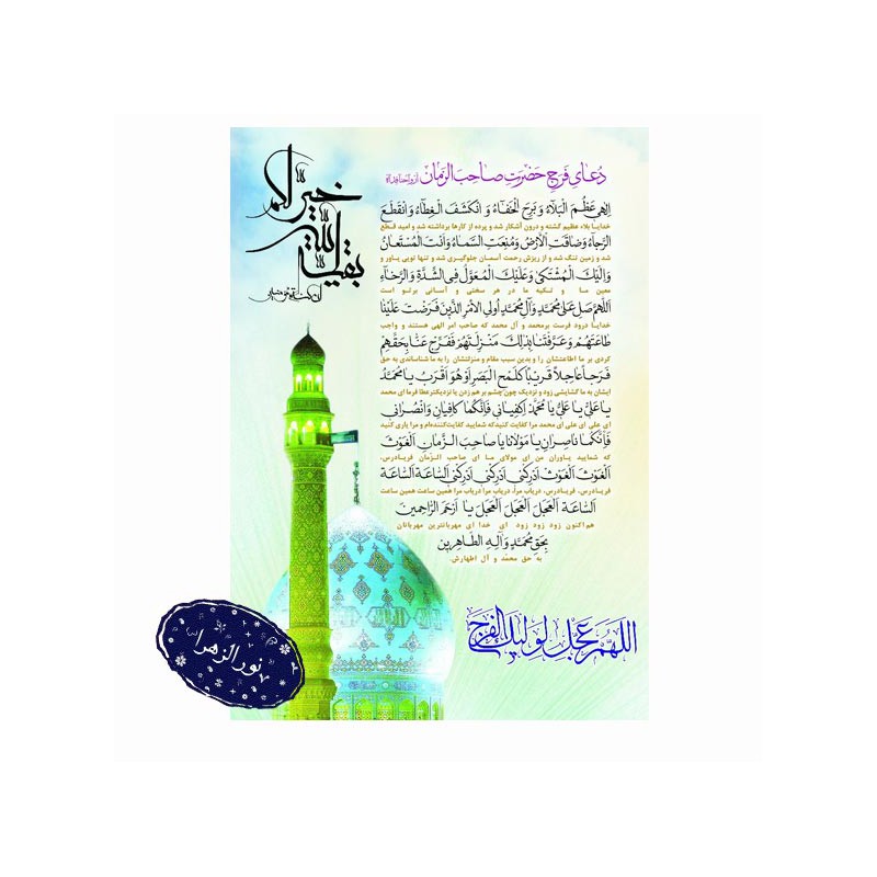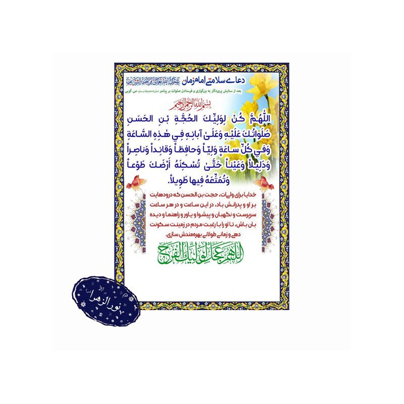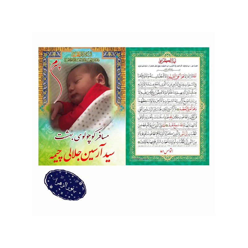 مشخصات: 100 عدد به بالا تک برگی هر عدد 2700 تومان با دعا و سوره مورد نظر شما به همراه عکس و متن سفارشی شما ابعاد حدود 11 در 7 سانتی متر جهت کسب اطلاع بیشتر و اعلام متن و تصویر مورد نظر خود با شماره 09121014061 تماس بگیرید.