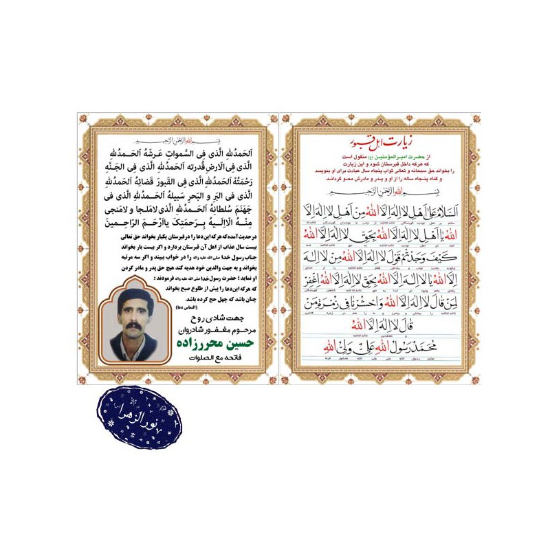کارت دعا هدیه اموات سفارشی تک برگ 100 عددی